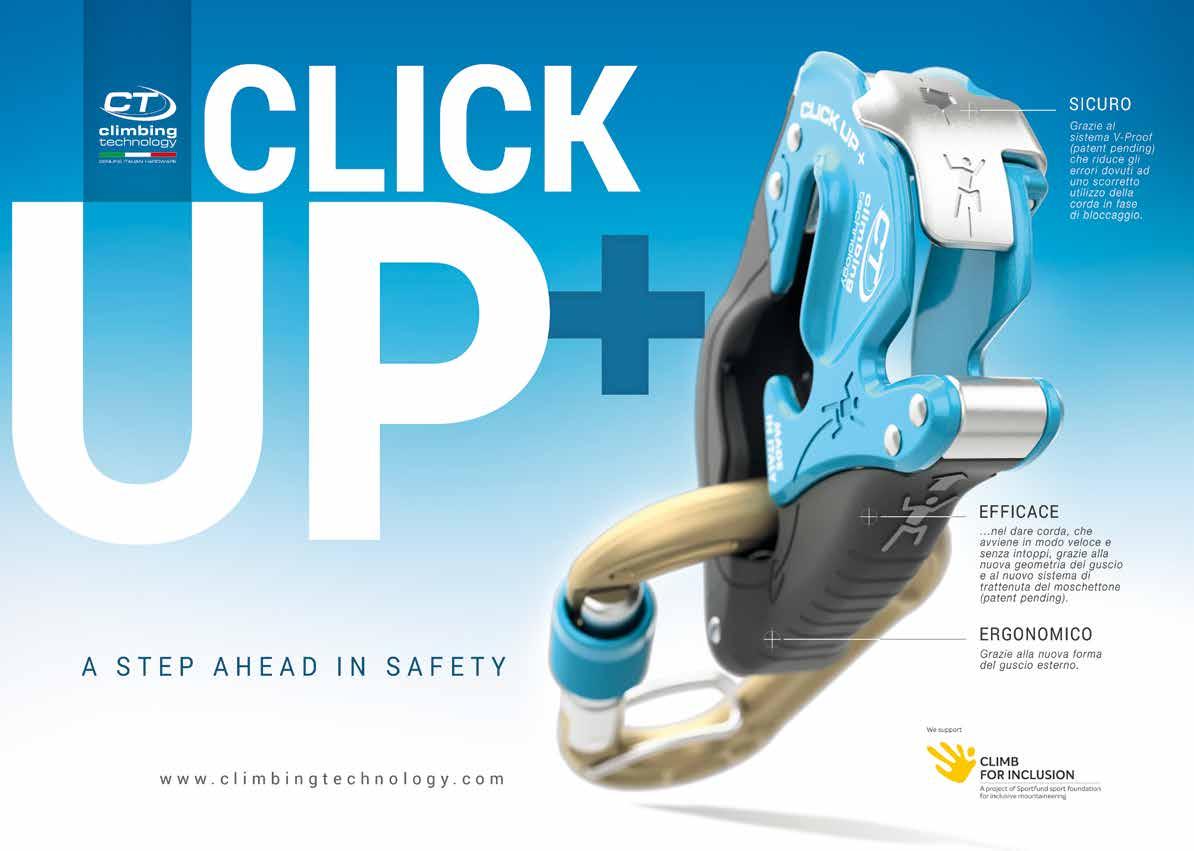 Click Up + è un innovativo assicuratore a frenata manuale, evoluzione del consolidato modello Click Up. Progettato per l’arrampicata indoor e in falesia, è utilizzabile con tutte le corde singole dinamiche da 8,5 a 11 mm, e consente di assicurare un arrampicatore da primo e in top-rope manovrando la corda con entrambe le mani. Il nuovo Click Up + si caratterizza per essere più efficace nel dare corda, grazie alla nuova struttura del guscio e al nuovo sistema di trattenuta del moschettone (patent pending), più confortevole nell’uso in top-rope, grazie alla nuova geometria delle guance, più sicuro, grazie al sistema V-Proof (patent pending) che riduce gli errori dovuti a uno scorretto utilizzo della corda, e più ergonomico. Come il modello precedente, permette di arrestare una caduta semplicemente trattenendo con la mano il lato libero della corda e di calare il compagno esercitando una leggera pressione sull’attrezzo; garantisce un’assicurazione efficace, grazie alle apposite cave di frenaggio a V. Fornito con l’apposito moschettone HMS Concept SGL HC, con anodizzazione anti-usura e sistema ACL che previene la possibilità di carico sull’asse minore.