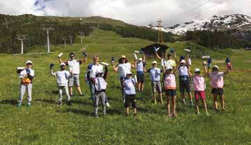 In basso, Federica Brignone con i ragazzi degli sci club bormiesi e Sciare per la vita