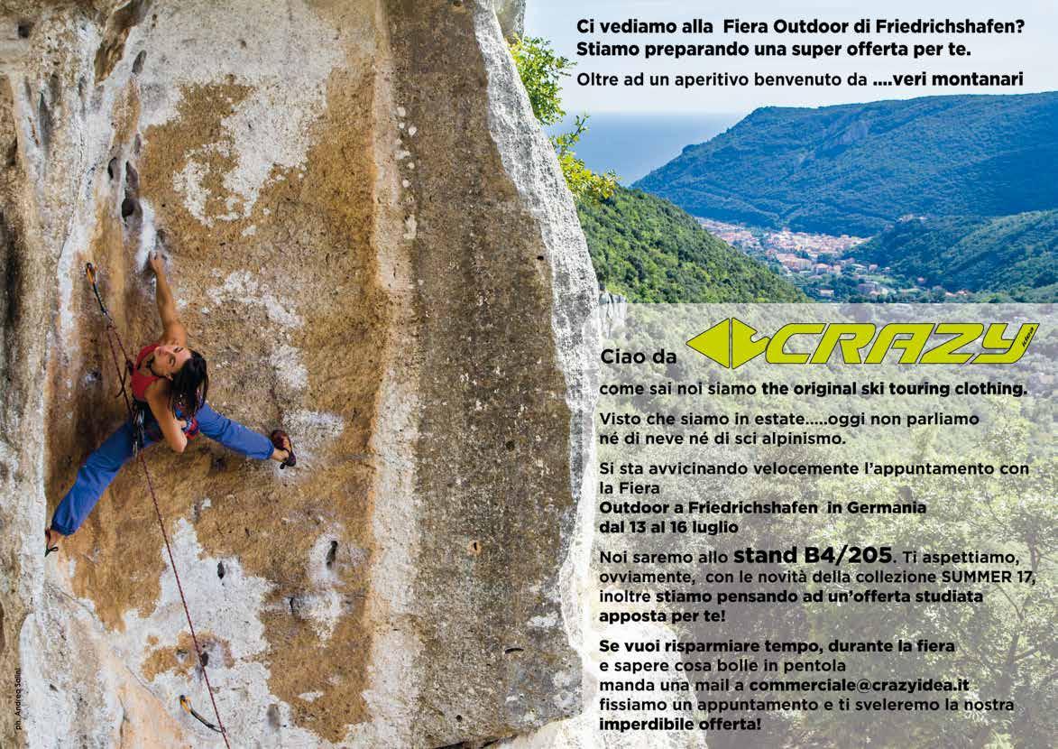 Per la prima volta, Crazy Idea sarà presente anche alla Fiera OutDoor di Friedrichshafen, dove verrà proposta tutta la collezione che comprende le linee montagna, running e street/boulder.