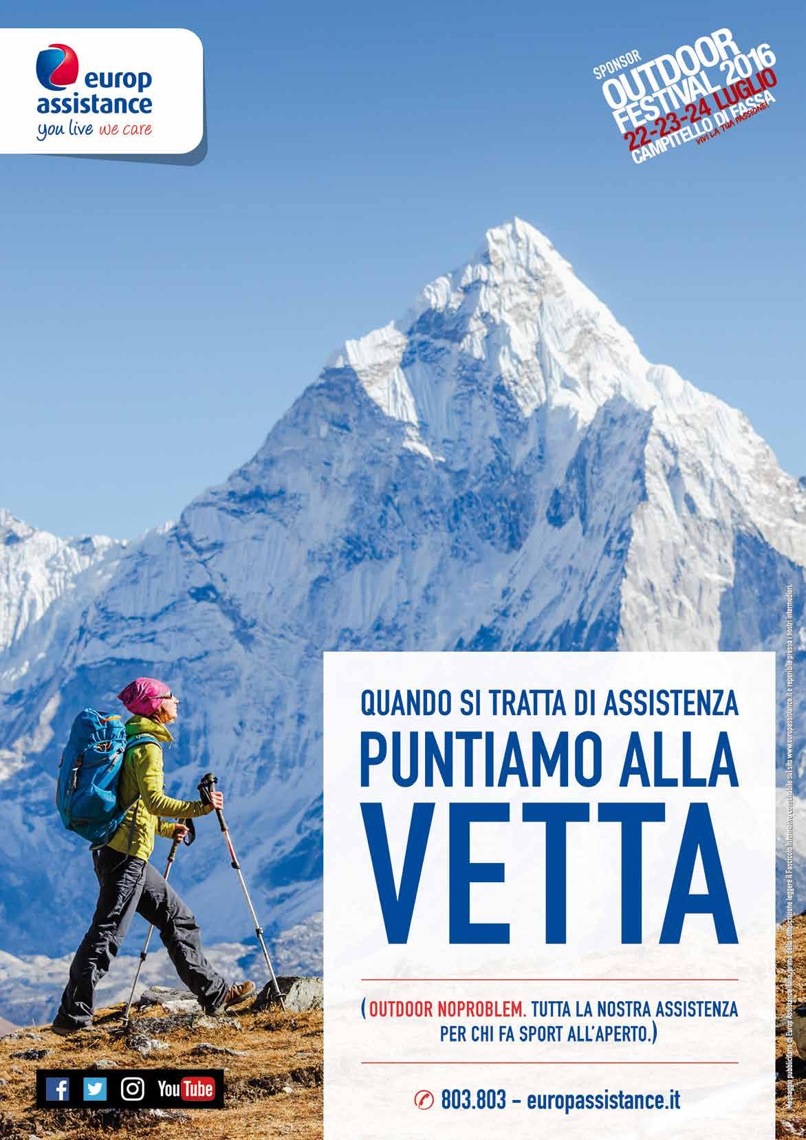EUROP ASSITANCE E OUTDOOR FESTIVAL – Nei giorni 22-23-24 luglio la compagnia sarà presente in qualità di sponsor ufficiale all’Outdoor Festival di Campitello di Fassa e con uno stand dedicato all’interno dell’outdoor village. E ancora una volta sarà presente anche il Team di #Corricon, impegnato a vivere lo sport da protagonista, cimentandosi in una prova di arrampicata in quota al Col Rodella. Le telecamere di Icarus 2.0 seguiranno l’impresa del Team per raccontarvela su Sky Sport HD.