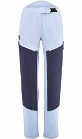 I pantaloni, invece, presentano aree funzionali che regolano la temperatura e incrementano le prestazioni del Chambersystem Protector. La termoregolazione è assicurata anche in questo capo dal sistema 3D Bionic Sphere abbinato alla tecnologia ThermoSyphon.