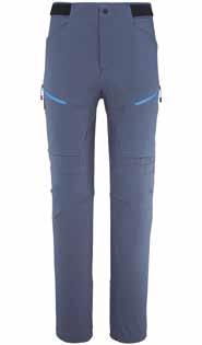 Anche il materiale antivento dei pantaloni è studiato per tenere lontano il freddo. Quando la temperatura sale, possono essere trasformati rapidamente in pantaloncini grazie alle zip sulla gamba. In alternativa, è possibile alzare l’orlo dei pantaloni usando la coulisse regolabile. Il modello presenta due tasche aperte e una cargo con zip. Inoltre, il modello da uomo presenta anche una tasca posteriore aperta.