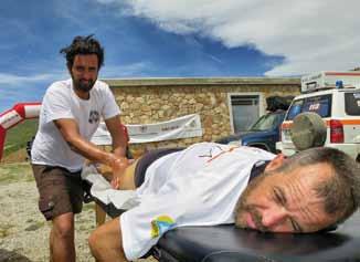oggi nuovamente primo all’arrivo, si sottopone a un lungo trattamento, mostra segni di affaticamento su entrambi i quadricipiti e un po’ di tensione sul bicipite femorale destro. Il campione sardo a trattamento finito si dichiara semplicemente rinato. Nicola, che nella vita sportiva è anche maestro di sci e di mountain-bike e istruttore nordic walking, lavora a Beinette, in provincia di Cuneo. Tra i suoi clienti più affezionati annovera anche l’inossidabile Marco Olmo e molto sovente viene chiamato per prestare la sua graditissima opera a eventi sportivi di ogni genere. Nicola Revello reve77@alice.it