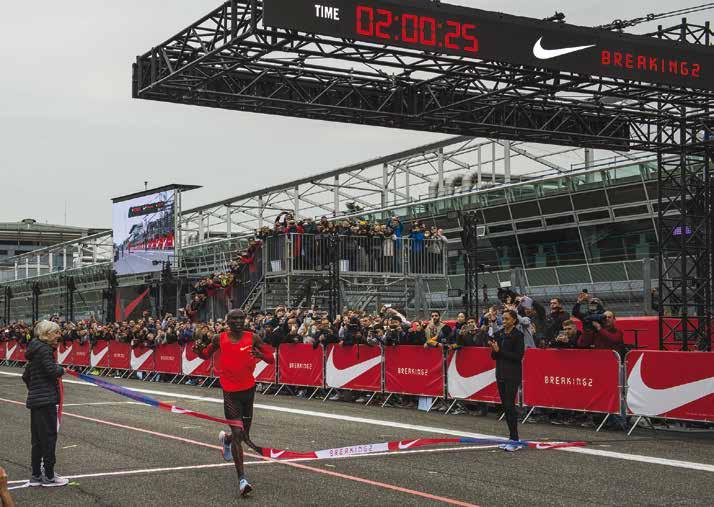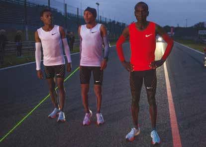 china dell’innovazione (e a darle un senso) per conquistare un primato che scienziati e matematici hanno stimato poter essere raggiungibile per il 2030. Nasce così nel 2015 Breaking2, il progetto di Nike mirato all’abbattimento del muro delle due ore, dove tutto è stato studiato e progettato nei minimi dettagli, iniziando dall’individuazione degli atleti giusti, Eilud Kipchoge, Lelisa Desisa e Zersenay Tadese, scelti per i loro anni di esperienza accumulati in questa disciplina e per le loro doti naturali superiori nella corsa veloce a lunga durata. Insieme a loro, l’azienda ha coinvolto ingegneri e designer, biomeccanici e nutrizionisti, fisiologi e sviluppatori di materiali che hanno lavorato costantemente al fianco dei tre atleti per trasformare le ambizioni sportive, scientifiche e di marketing in un record così tanto ambito.