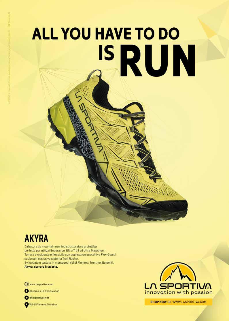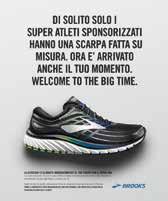 loci oppure lenti, che inseguano un record personale o che corrano semplicemente per nutrire l’anima o lo spirito - meritino di sentirsi Atleti Superstar. E provare la sensazione di indossare ai propri piedi una scarpa “fatta su misura”, come la nuova Brooks Glycerin 15 che è la scarpa del mese di questo numero di Running Magazine (nelle pagine centrali). Non perdetevi un articolo con tutti i dettagli di questo lancio sul prossimo numero. brooksrunning.com - brooksAthlete.com