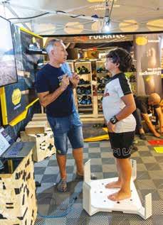 Allo stand Vibram della fiera di Riva del Garda era presente anche uno scanner in grado di fornire immediatamente informazioni circa la lunghezza, l’appoggio e la rotazione dei piedi per una maggiore consapevolezza di cosa ci tiene in piedi e ci permette di svolgere tutte le attività quotidiane. ANGELO BELOTTI E SERGIO ROSSATO “ Passare da una scarpa strutturata alla nostra con le cinque dita necessita di una fase di adattamento”, Dice Sergio Rossato. “Si possono praticare tutte le discipline, ma è necessario passare diverse fasi di adattamento e di rieducazione di tutta la catena motoria. Il sito dedicato all’educational fornisce diversi tutorial dall’uso quotidiano fino alla performance sportiva senza dimenticare l’allenamento in un programma di formazione che dura circa 20 giorni.
