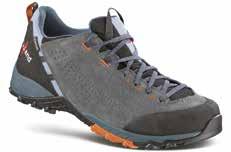 Per le escursioni a quote medie, il brand propone uno scarpone da trekking veloce, leggero e versatile. Esteticamente è il risultato di una sintesi tra tradizione ed evoluzione della categoria hiking. La tomaia in pelle scamosciata, robusta e protettiva, si unisce a un collarino moderno, inserti in tessuti tecnici e applicazioni in poliuretano che rinforzano tutta la struttura senza appesantirla. Grazie alla suola a doppia densità di EVA, lo scarpone è leggero e flessibile, ideale per terreni misti e con carichi anche impegnativi. La suola Vibram Multiverse Hike ha tassellatura più alta e spaziata per un miglior scarico di detriti e sporco, mentre le zone di punta e tacco sono ampie per maggior grip su sterrato e in discesa.