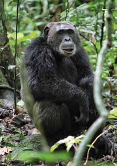 uN iNCONTRO RAvviCiNATO un inaspettato scalpiccio a terra, un’ombra nera che cammina a pochi metri da noi, poi corre, salta sulla base di un grosso tronco, lo percuote con un pugno generando un frastuono cupo per poi risparire nel verde. un nuovo fruscio, una nuova ombra che sbuca dalla fitta vegetazione terrena, lo stesso grosso scimpanzé che cammina verso di noi per poi fermarsi a sedere ad una decina di metri. E’ il capobranco, il più vecchio del gruppo, quello che sa ancora imporsi sugli altri e quindi comandare. La guida ci spiega che il rumoroso gesto a cui abbiamo assistito pocanzi non è altro che uno dei tanti segnali che il primate, usufruendo di alberi particolarmente sonori, manda ai suoi simili, che dall’alto rispondono con versi scimmieschi ripetuti ad eco. Comodamente seduto su un tronco ammuffito a terra, il capo si guarda intorno apparentemente incurante della nostra presenza. Ogni tanto si spulcia un po’, poi ruotando la testa continua la sua perlustrazione visiva che ai nostri occhi sembra quasi un atteggiarsi da fotomodello. Il suo pelo, ingrigito dagli anni, e i suoi occhi leggermente arrossati, infondono tenerezza ma impartisco-