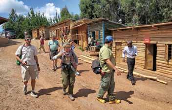 per seguirli e goderceli. Guardarli nei loro gesti quotidiani, nel loro habitat, è semplicemente fantastico. Il “nostro” branco è composto da 13 elementi, noi ne vediamo 7 compreso il grande Silver Back, il grande capo, più grosso e più forte degli alti maschi adulti, colui che in caso di necessità protegge tutti e nello stesso tempo li comanda e li coordina nei loro continui spostamenti alla ricerca di cibo in giro per la montagna. un’ora di così tale intensità emotiva passa veloce come alcune nuvole che sospinte da un vento di quota attraversano celeri la volta celeste. Precisi come orologi svizzeri, ma gentili e sorridenti, le guide ci rimettono sul cammino di rientro, interrompendo di fatto un sogno ad occhi aperti. un cammino quest’ultimo che in questo eccezionale caso non è altro che il passaggio già ricavato al mattino a suon di lama, ripercorso in senso contrario.