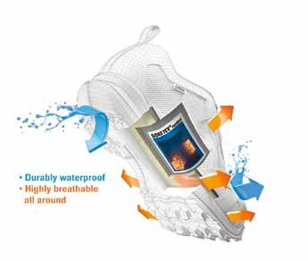 The Danish brand ECCO, specialized in direct injection, is launching its first collection of casual shoes with the Gore-Tex Surround product technology. This provides footwear with ECCO’s unique walking comfort while being highly breathable and durably waterproof all around the foot. Excess moisture and heat can escape at any time through the upper assembly, and now in addition below the foot and then out via openings to the side of the sole. For the season SS 2015, 15 Gore brand partners offer Gore-Tex shoes with Surround product technology. Amongst them Clarks, Ara, Legero, IGI & CO. Primigi, Högl, Superfit and Fretzmen. But also Viking, Salewa and - new for 2015 - ECCO and Lowa (with an urban inspired collection). For more infos about the technology see the article on page 42.
