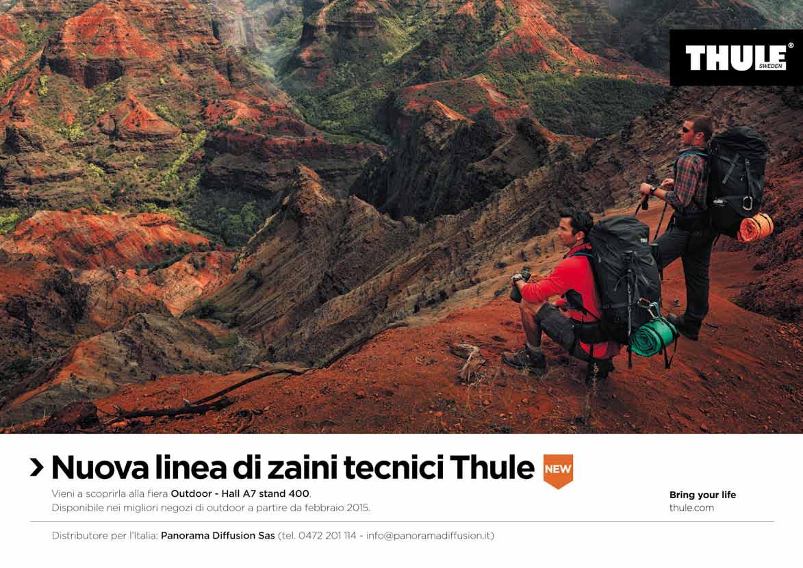 Come sempre un numero in edizione bilingue, con una ricca Guida Prodotti PE 2015 in allegato. Che oltre ad essere spedito a tutti i nostri affezionati lettori, verrà distribuito in modo capillare durante OutDoor Friedrichshafen (10-13 luglio). Dove potrete incontrarci presso il nostro stand (FW 111) ma soprattutto tra i padiglioni, alla ricerca di storie, spunti e innovazioni.