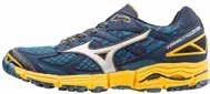 Realizzata con una tomaia in Air Mesh, assicura traspirabilità e leggerezza. Grazie all’intersuola in mescola di Ap+ offre ammortizzamento e reattività. Il nuovo concetto tecnico per il trail in casa Mizuno XtaRide consiste inoltre nella presenza di cuscinetti Xtatic e tassellatura con design a X. La scarpa è così in grado di adattarsi efficacemente a ogni tipo di percorso incontrato e si muove in perfetta armonia con il piede. Il battistrada favorisce un grip ottimale anche sulle superfici bagnate. Differenziale: 12 mm. Peso: 325 g.