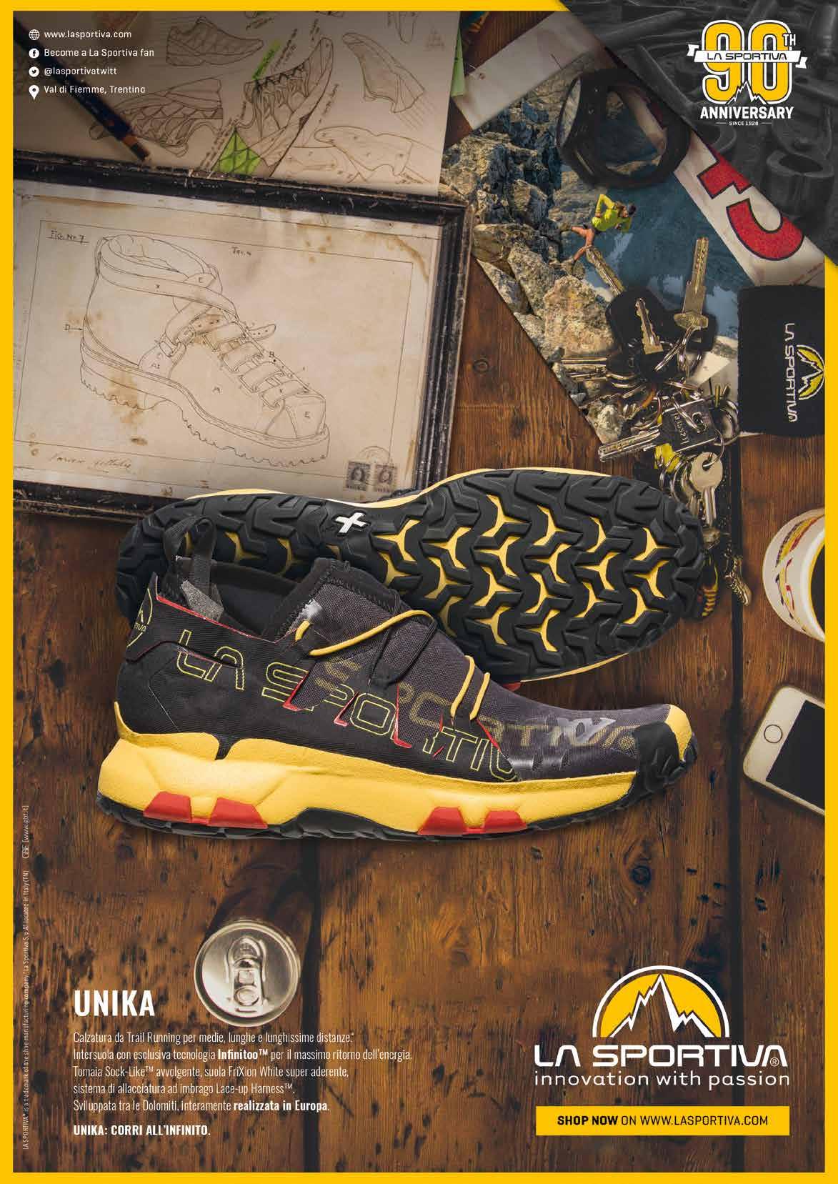 Michele Graglia, il primo al mondo ad aver vinto sia la gara più calda del globo (la Badwater 135) che quella più fredda (la Yukon Artic Ultra), è uno dei nuovi ambassador di La Sportiva. Tra le scarpe di suo gradimento, ci è stato raccontato, ci sono le Bushido (che utilizza sulle distanze corte) e le Akasha per quelle più lunghe. Mentre sulle Unika, le nuovissime calzature da ultra-running della casa trentina, Michele non si sbilancia ancora. Non le ha provate a sufficienza perché gli sono arrivate solo dopo la Badwater, quando le gambe dure non gli hanno permesso di percorrere grandi distanze e grandi dislivelli, misure queste di cui la “nuova creatura” La Sportiva ha bisogno per esaltarsi. Dopo la mitica Death Valley, Michele Graglia affronterà l’attraversamento del deserto dell’Atacama di corsa (1.200 km), in Cile. La scelta tecnica sul materiale da usare non poteva quindi esser casuale.
