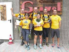 Il podio: 1° Franco Collè, 2° Galen Reynolds, 3° Peter Kienzel, 4° Oliviero Bosatelli e 5° Kouta Toriumi (primo atleta del Montane VIA Trail Team)