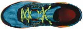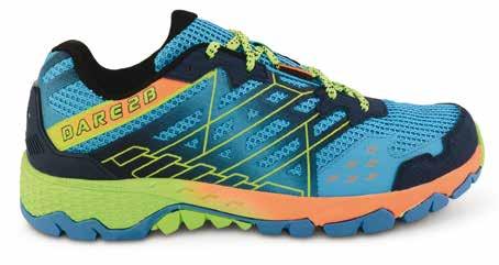 Scarpa da trail running comoda e performante, realizzata con tomaia in mesh leggera e traspirante e sovrastrati di supporto in PU. Il sistema di allacciatura oversize “free foot” riduce la pressione sul collo del piede e favorisce la circolazione, mentre i doppi passanti danno maggiore stabilità al tallone. La soletta interna sagomata in EVA offre il massimo comfort, l’intersuola antishock sagomata a compressione EVA, con zone stabilizzanti, migliora la falcata e la postura. La robusta suola esterna con tacchetti bidirezionali autopulenti, garantisce stabilitá e propulsione. Peso: 353 g (misura 8/42).