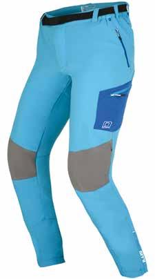 Pantaloni realizzati secondo la struttura AEP Kinematics (Advanced Ergonomic Performance, forme sagomate e tessuti ultra stretch per la massima libertà di movimento). Costruiti con tessuto di poliestere stretch Ilus Softshell Lite e finitura idrorepellente, presentano girovita parzialmente elasticizzato con cintura in fettuccia in nylon staccabile e numerose altre specifiche tecniche: apertura zip, ginocchio sagomato per una maggiore libertà di movimento, 2 tasche laterali con zip, 1 tasca applicata con chiusura a zip, sovrastrato rinforzato dello stesso tessuto nell’interno caviglia, orlo rinforzato con gel antiscivolo, chiusura a zip del polsino.