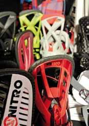 La collezione di tavole presenta ben 13 modelli totalmente nuovi e 28 nuovi shape. La parola d’ordine che scorre in tutta la linea è divertimento, ma anche innovazione tecnologica e ricerca (un must di Nitro da sempre). Facendo una rapida carrellata della collezione si notano la nuova PAnterA (in più versioni), la nuova blAcklight (sempre proposta con camber gullwing e standard), la nuova eero e tutti gli altri “classici” di casa Nitro come la teAM e la t1 . E poi ancora i pro one off di Jon kooley , Justin bennee e del piccolo e talentuosissimo MArkus kleVelAnd . Tra i modelli che ci hanno colpito di più: la ultiMAte , leggerissima e super performante grazie alla sua anima realizzata interamente in Koroyd; la thunder , che segna il rientro di Nitro nel mercato delle Split Board (segmento in continua e costante crescita); la ubersPoon , una tavola veramente divertente e concettualmente innovativa, la più provata sulla neve da rappresentanti e distributori durante il meeting. La linea da donna si compone di ben 10 modelli specifici: dalla nuovissima VictoriA , alla classica FAte , al pro model di cheryl MAAs fino all’incredibile versione Women’s della slAsh ad accontentare anche le rider più affamate di powder e freeride in generale.