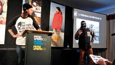 Innanzitutto un gran desiderio di rilancio dopo la negativa stagione passata che ha penalizzato il mondo snowboard a 360°, senza risparmiare nessun brand e per la verità anche quasi nessun mercato (con qualche eccezione come Russia e USA). In secondo luogo la volontà di verificare come sta procedendo la riorganizzazione aziendale Nitro di questi ultimi due anni: nel cambio di proprietà (Nitro è tornata ad essere un’azienda al 100% “snowboarders driven”), nella riorganizzazione del marketing con la nuova entrata del rider (e molto altro) Knut Eliassen come team manager e responsabile marketing USA e nella definizione del settore “design” con un nuovo responsabile globale dell’immagine Nitro (l’artista, grafico, illustratore Paul Brown).