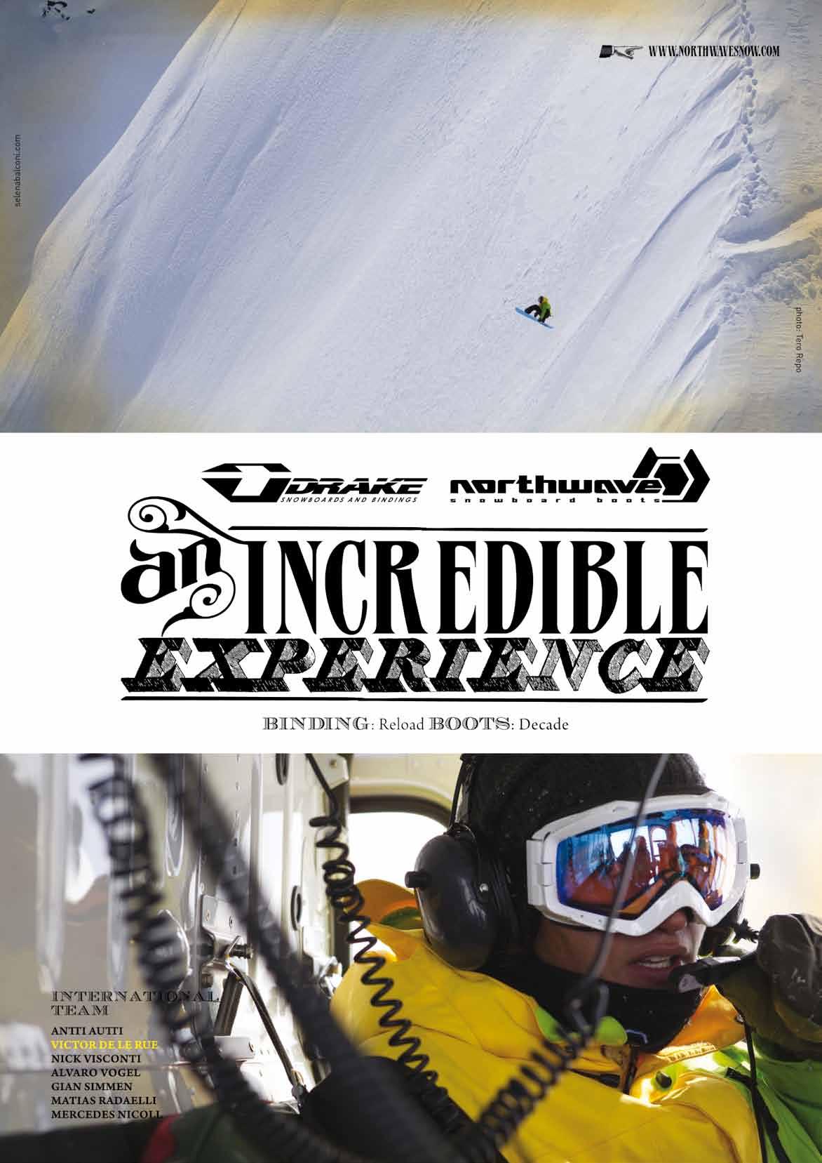 l A PArol A A nick V isconti – “Il tour europeo firmato Northwave e Drake è volto al termine. Non so come descrivere questa iniziativa, perché se lo facessi la vostra casella di posta non sarebbe in grado di ricevere i Gb di testo che dovrei scrivere. Ma anche perché il tour è stato al limite del pazzesco. Si è trattato di un trip davvero allucinante, in quanto a materiale prodotto. Per due settimane non ci siamo mai fermati tra visite negozi, photoshooting con il fotografo Matt Georges, incontri con i media (incluso Rolling Stones) e sessioni di riding su ghiacciaio”.