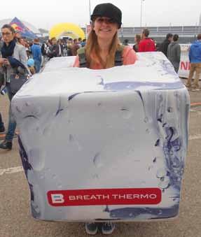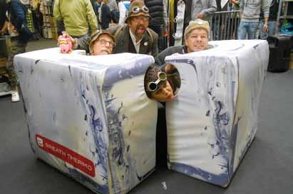 maratona di Firenze, questa volta grazie anche a una collaborazione con Red Bull. Ma come si diceva, dal momento che la tecnologia di questo filato si adatta efficacemente a molteplici destinazioni di impiego, si può dire che il brand nipponico recentemente stia riscoprendo una nuova vocazione che lo ha portato all’interno del settore degli sport invernali. La fiera Skipass di Modena, svoltasi dal 31 ottobre al 3 novembre, è uno degli eventi di riferimento in questo senso ed è per questo che Mizuno non si è lasciata sfuggire l’occasione per promuovere Breath Thermo. Grazie anche alla collaborazione con l’insegna Parma Sport, circa 1.000 visitatori hanno potuto effettuare il test del filato o effettuare un acquisto, incentivati anche da hostess letteralmente vestite con finti cubi di ghiaccio che potevano essere indossati anche dai visitatori per una foto ricordo. Per finire, restando sulla neve, degna di nota è la partnership firmata con il celebre freeskier Dimitri Sartor.