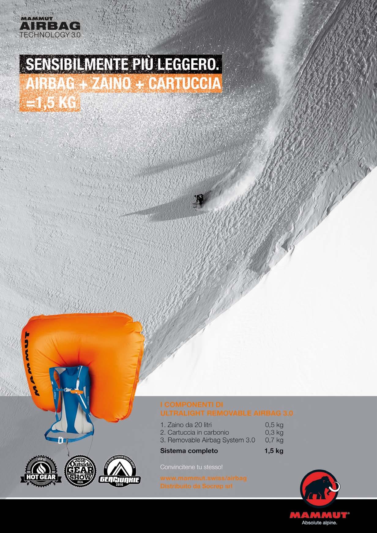 Ortovox Avabag è una delle novità più recenti e innovative nel campo della sicurezza fuoripista. Premiato con l’Ispo Product Of The Year, è stato creato per le grandi avventure freeride e scialpinismo in cui peso minimo e assoluta sicurezza sono di primaria importanza. Ortovox invita tutti i freerider e scialpinisti a testarlo attraverso gli Avabag Test, eventi prova che avranno luogo dalla metà di gennaio alla fine di febbraio, di sera e durante le giornate feriali, in 19 location diverse. Dopo aver ricevuto le istruzioni da parte degli esperti Ortovox, i partecipanti avranno la possibilità di testare a piacimento l’Ascent Avabag e l’Avabag Free Rider con protettore dorsale integrato. Contestualmente agli Avabag Test si svolgeranno le Ortovox Safety Nights, mini-gite di scialpinismo notturne (due sessioni, 18-20 e 20-22) condotte da guide alpine UIAGM, in cui gli iscritti avranno l’opportunità di provare i kit ARTVA/pala/sonda di Ortovox. Le Safety Nights sono organizzate con la collaborazione di Petzl. Le serate sulla neve si svolgeranno durante la settimana in note località montane. Le tre tappe italiane si svolgeranno il 23 gennaio a Ovindoli, il 28 gennaio a Courmayeur e il 10 febbraio a Madonna di Campiglio. Le iscrizioni sono già possibili sul sito: www.ortovox.com