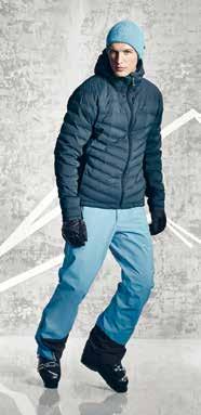 Il giubbotto Fab Cocoon è costituito da una struttura a due strati traspirante e altamente impermeabile con una superficie morbidissima per un comfort straordinario. Grazie all’imbottitura con piume d’oca di prima qualità 750 cuin, prodotte in Europa in modo sostenibile, il giubbotto tiene al caldo alle basse temperature e la struttura a coste inserita di lato assicura la massima libertà di movimento e una traspirazione aggiuntiva. Il giubbotto è poi completato da dettagli specifici per lo sci, come un catarifrangente