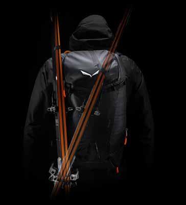 Ideale per le escursioni di scialpinismo, Pro Level 30 è la proposta di Marsupio che consente di portare gli sci sempre con sè: il trasporto è possibile sia assicurandoli in verticale, grazie ai due passanti laterali, sia in diagonale tramite la cinghia regolabile sul fondo, oltre a quella superiore inserita nella tasca apposita. È accessoriato di porta bastoni e piccozza, cinghie di compressione laterali, mentre quelle orizzontali – poste nella parte frontale – vengono sfruttate per portare le ciaspole o la tavola.