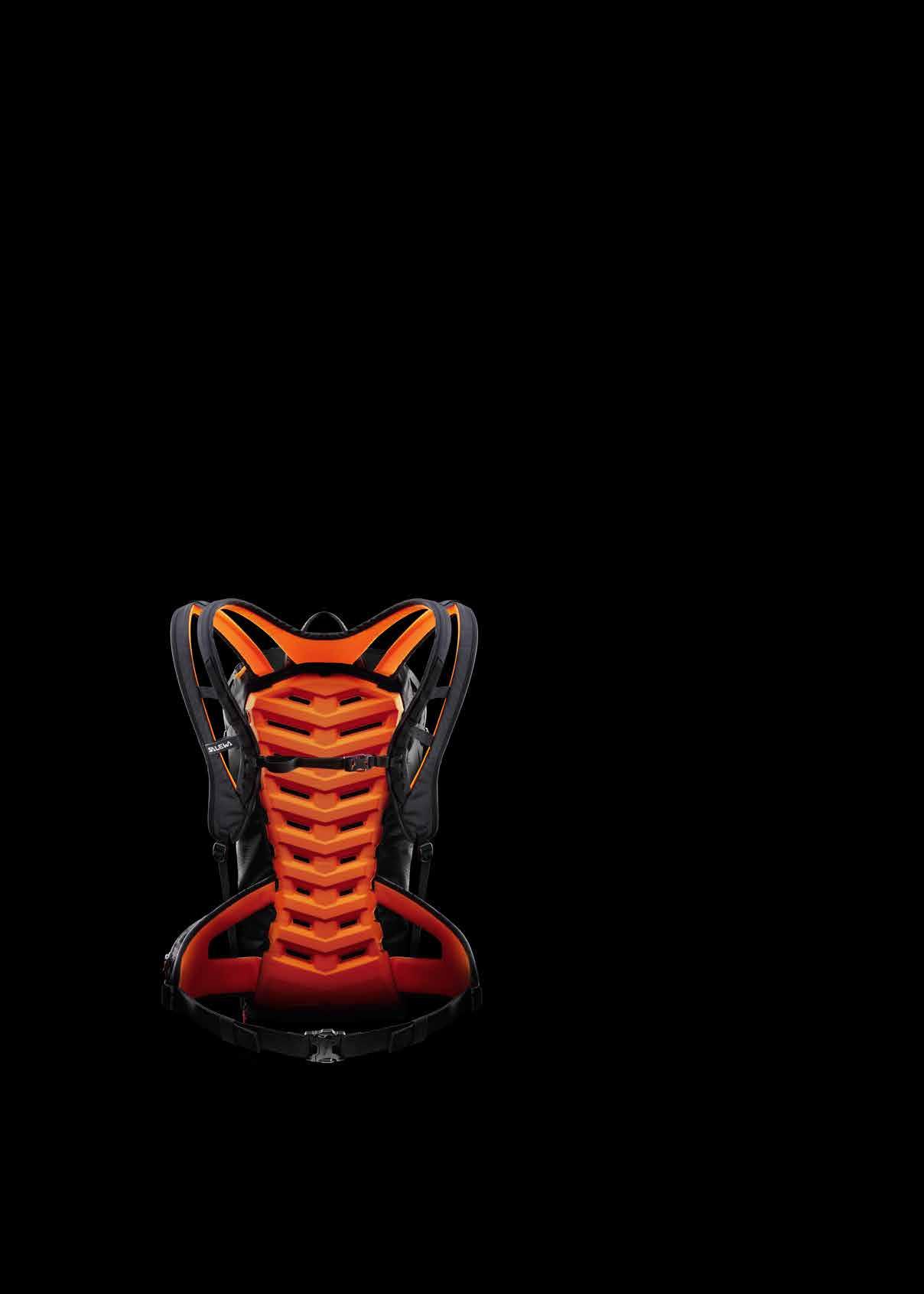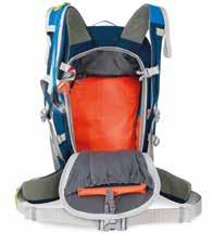 DISTRIBUZIONE SPAZI / al suo interno, Pro Level 30 è dotato di un’apposita tasca per collocare la sacca di idratazione, sul cui fondo è presente un foro per l’uscita della cannuccia, fissata alla parete dello zaino tramite asole elastiche. Uno spazio apposito è dedicato al collocamento di un radio-trasmettitore, mentre pala e sonda trovano la loro collocazione nella tasca frontale d’emergenza, compresa di stampa S.O.S. Un’area imbottita è invece pensata per riporre la maschera e un piccolo vano per contenere le chiavi