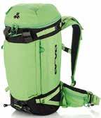 Per le giornate di freeride sono ovviamente indispensabili tutti i prodotti legati alla sicurezza che abbiamo descritto e approfondito nelle specifiche tecniche alle pagine precedenti e qui sopra. In questo caso vi proponiamo invece un modello di zaino per lo sci in neve fresca che, pur non dotato di sistema abs, è altamente efficiente e presenta funzionalità utili per l’autosoccorso. Si citi a titolo di esempio lo scomparto valanga con sonda dedicata e custodie per la pala, che separano gli strumenti dall’attrezzatura asciutta nello scomparto principale nella versione da 35 litri.