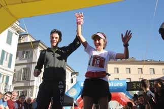 ristoro improvvisati, dove è possibile bere un sorso di acqua fresca dai bambini che, fuori dalla loro abitazione, si divertono ad allestire la loro personale bancarella e a “battere il cinque” ai runner. Per non parlare dell’arrivo a Sondrio, tra due ali di folla e un tappeto che porta fino all’arrivo. E così anche noi, dopo 2 ore e 43 minuti di pura adrenalina, con il sole sul volto e il vento tra i capelli, abbiamo tagliato il traguardo. Ad attenderci la medaglia (in serpentino, quindi anche questa a km 0 o quasi) data i finisher. A vincere la competizione sono stati due campioni di caratura mondiale come Xavier Chevrier e Emmi Collinge. Per il valdostano del Valli Bergamasche Leffe, iscritto alla marathon, la scelta di correre su una distanza inferiore è stata obbligata da un attacco influenzale che a metà settimana aveva messo a serio dubbio la sua presenza. Per lui cavalcata trionfale coronata da applausi in zona traguardo e orologio stoppato sul tempo di 1h 33’ 17”. Nella gara in rosa importante riconferma per la vicecampionessa mondiale di corsa in montagna Emmie Collinge, regina del Wine Trail in 1h 38’ 50”.