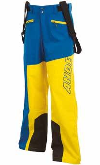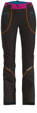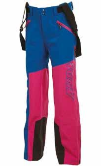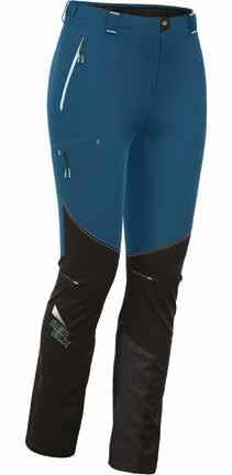 Anche il pantalone è in poliestere tre strati, impermeabile e traspirante. Protegge dal vento grazie alla vita richiudibile a bottoni, regolabile mediante due velcri e passanti compatibili con cintura. È dotato di bretelle regolabili e removibili. Lateralmente presenta due ampie zip per favorire la traspirazione, mentre il fondo gamba è caratterizzato da zip e ghetta interna con velcro; infine, presenta inserti di tessuto a elevata robustezza e anti-taglio per protezione in caso di utilizzo con sci o ramponi. Tutte le cuciture dei pantaloni sono termonastrate e le zip sono waterproof. Disponibile in versione uomo e donna