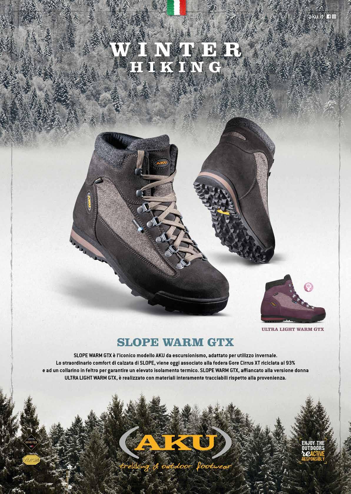 o spirito artigianale di AKU, sempre con lo sguardo rivolto al futuro, ha prodotto per la FW 24/25 due modelli che sono un perfetto mix tra delle calzature da montagna leggere ma al tempo stesso adatte alle condizioni della montagna invernale. Si tratta di scarpe ad alta
