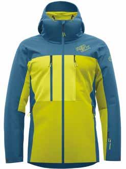 Guscio realizzato in poliestere tre strati, che offre impermeabilità, traspirabilità e protezione dal vento. È dotato di cappuccio fisso con visiera, doppia regolazione e collo rialzato per garantire protezione anche in caso di condizioni avverse. Dotato di cerniere per una migliore areazione durante le attività intense e di polsini regolabili. Le tasche anteriori sono studiate e posizionate per facilitarvi l’accesso anche con l’imbrago. Internamente, la ghetta elasticizzata associata alla coulisse a fondo busto offre vestibilità ottimale, protezione e minor dispersione di calore. Disponibile in versione uomo e donna.