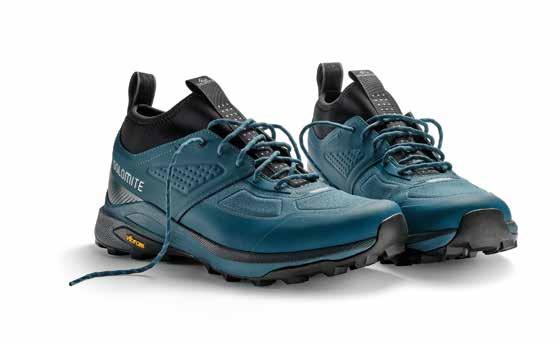 La suola Vibram Pepe con mescola Megagrip assicura una maggiore aderenza su diversi tipi di terreno e, infine, l’intersuola in EVA a doppia densità garantisce ammortizzazione e stabilità.