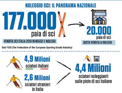 Ma questo non deve tramutarsi in rassegnazione e il business dei winter sport è ancora vivo e vegeto. In molti casi ancora in crescita per svariati brand, retailer e operatori in genere. Con grandi potenzialità in alcuni mercati, in primis la Cina. Il cui governo punta a coinvolgere addirittura fino a 300 milioni di persone nella pratica di sport invernali entro il 2022 (anno nel quale si svolgeranno le Olimpiadi di Beijing). Venendo ai ben più modesti – ma per noi più utili – dati di casa nostra, scopriamo altri dati incoraggianti sul sistema turistico legato alla montagna bianca (si veda l’articolo dedicato a pagina 8): cresce complessivamente del 3,3%, così come il fatturato dei servizi collegati alla pratica delle discipline sportive sulla neve (+5,2%). Tra questi il noleggio di attrezzatura. A proposito: molto interessante analizzare i dati elaborati dall’osservatorio sul rental di Prowinter (approfondimento alle pagine 14-15). Il primo vero e proprio censimento “scientifico” del settore, che ha registrato 851 noleggi. I quali movimentano ben 376mila paia di sci e coinvolgono oltre 4 milioni di sciatori (tra italiani e stranieri).