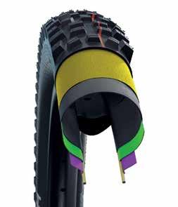Il ritorno di uno pneumatico apprezzato da tutti gli amanti della velocità. Schwalbe lo ha dotato di tutto ciò che la moderna tecnologia applicata alle gomme da mountainbike ha da offrire. Un tuttofare per il downhill e l’enduro in condizioni di terreno secco o umido. Big Betty montata al posteriore in combo con Magic Mary all’avantreno rappresenta la perfetta accoppiata Schwalbe per affrontare ogni terreno off road e le più tecniche discese dei campi di gara enduro e downhill. Le caratteristiche in frenata di Big Betty sono migliorate dai tasselli rinforzati per ottenere la massima trazione. I tasselli della spalla sono estremamente stabili per avere sempre un ottimo controllo e appoggio in curva. Il battistrada aperto e aggressivo permette grip superiore e garantisce l’effetto autopulente durante la rotazione. Big Betty “Evolution Line” è disponibile con mescole Addix Soft e Addix UltraSoft e con costruzione Super Downhill, Super Gravity, Super Trail; mentre nella versione rigida “Performance Line” nella versione Bike Park. Big Betty è disponibile in diametro 26”, 27,5” e 29” con sezioni da 2,40”, 2,60”