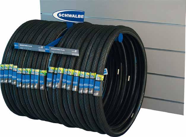 Per i dealer più esigenti ha pensato a una serie di prodotti per tenere in ordine il negozio e in bella vista i prodotti Schwalbe. Molti shop infatti sono provvisti di pareti dogate, dove è facile appendere espositori e mensole tenendo tutto a portata di cliente. Schwalbe pensa a loro e offre una serie piuttosto completa di accessori per completare queste pareti.