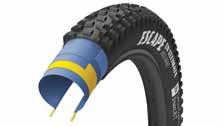 ESCAPE Goodyear pensa a questo pneumatico con un’idea fissa in testa: quella della versatilità. Una gomma ideale per ogni condizione e che quindi si adatta perfettamente alle esigenze del trail rider che pensa alla mountainbike come un mezzo tuttofare, che gli consenta di affrontare i sentieri senza pensieri. Escape si dimostra versatile grazie ai tasselli ben spaziati e incisi, che assicurano una auto-pulizia e la presa sempre ottima su tutta la superficie della gomma. La mescola scelta da Goodyear per Escape è la Dynamic: R/T a multidensità, pensata per i terreni più sconnessi, permette di avere grande tenuta e aderenza sia al centro che ai lati del pneumatico. L’inserto M:wall protection tiene lontani da tagli e forature grazie alla protezione in Nylon ad alta resistenza. Infine la carcassa Ultimate offre grande stabilità nelle varie condizioni del trail riding, con una dinamica di guida molto elevata.