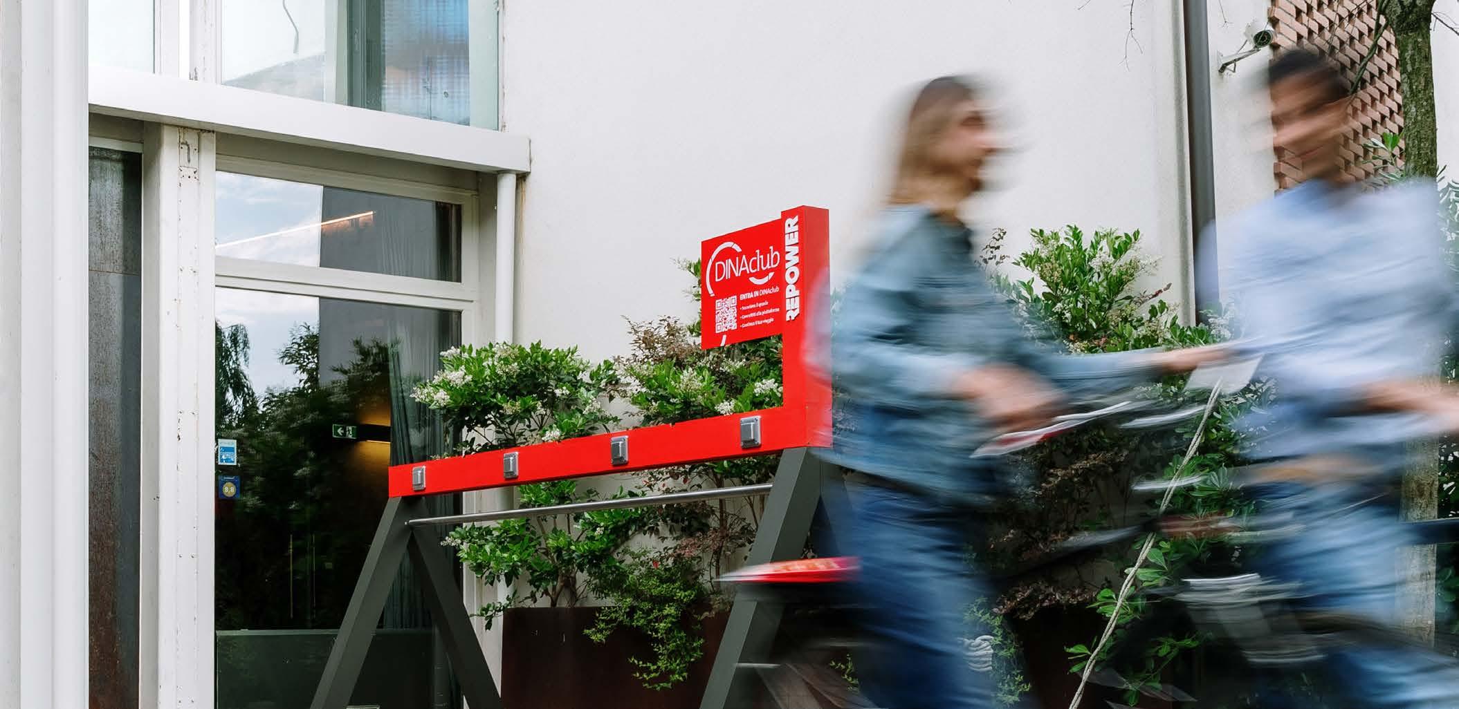 Born in 2021 during a L’Eroica cycling tour, DINAclub aims at electrifying Italian cycle routes on the initiative of Repower, national electricity and gas provider and electric mobility and cycling tourism-services supplier. The project is based on three cornerstones: gamification, visibility and a rack, DINA, where to safely leave up to seven bikes and recharge up to four eBikes. As a matter of fact, DINAclub was conceived for the pedal assisted network, and it’s useful for both cyclists and accommodation facilities: the first ones can take advantage of an intuitive way of outlining the route along the structures supporting eBikes recharging instruments, while at the same time downloading free cycling routes through a QR code applied on the rack; the second ones can have their accommodation marked as point of interest inside the komoot app official partner of theproject, making it possible to use them as starting or final point, and also benefit from a communication package, dedicated paths and an interview on dinaclub.repower.com.