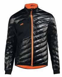 Si tratta di un capo resi stente a vento e pioggia grazie al tessuto dstopper Fuga che si distingue per ela sticità e resistenza. L’interno del capo è in termofelpa su polsini, collo e bande laterali, per il mantenimento del calore dai