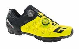 anatomica e realizzato in materiale plastico iniettato e carbonio per essere indeformabile. Il cupolino è antiscalzante e antitendinite. Nella parte posteriore alta, gli inserti reflex consentono un’ottima visibilità in scarse condizioni di luce. Per quanto riguarda soletta interna è una Eps Comfrt Insole anatomica e con supporto nella zona tarsale per garantire comfort ed efficienza nella pedalata. La suola è disponibile in due versioni. La Gaerne Mtb Carbon Sole Technology, testata dii migliori atleti professionisti, è composta in carbonio per offrire una rigidità e leggerezza mentre il il battistrada è ad alta resistenza all’abrasione e all’usura. Il profilo consente di ottenere una presa ed una trazione ottimali su ogni tipo di terreno, lo scaricamento istan taneo del fango e due alloggiamenti nella punta predisposti per l’inserimento dei tac chetti avvitabili con sentono di migliorare la presa sui terreni ster rati e fangosi. La Gaerne Mtb 3den sity Sole nasce dal centro Ricerca e Sviluppo Gaerne ed è una suola progettata appositamente per mtb.