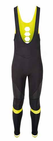 unica, taglio al vivo, frontale per la versione femminile che è comodissima in quanto passa al centro dei seni. Sotto il ginocchio vi è un inserto high visibility riflettente, come anche il logo GSG posteriore. Il fondello maschile è il Rekord