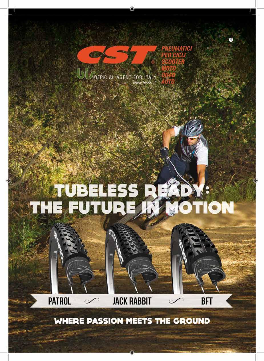 permette una notevo le riduzione del peso complessivo, pur man tenendo ottime presta zioni, mentre la prote zione in kevlar la rende resistente e permette di evitare le forature. Il battistrada è un semislick, infatti la parte centrale è liscia per aumentare la scorrevolezza sul dritto, mentre le spalle sono sagomate per migliorare l’aderenza e rendere sicura la percorrenza delle curve al limite, anche in caso di asfalto viscido o bagnato. www.csttires.eu