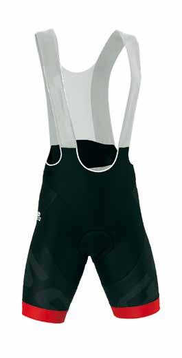 This bibshorts is a high-range product, which is also part of PREMIUM range, characterized by a very anatomical fitting made with a mix of high-end fabrics, where the elasticity of “Lycra Sport Excellence” allows you to have a perfect fit and a high comfort level. Further comfort is ensured by braces on polyester mesh fabrics, which are very breathable and comfortable at the same time. The leg hem is made with a customizable elastic band.