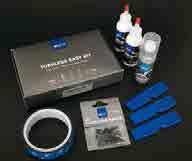 Schwalbe Tubeless Easy Kit Ideale per la conversione tubeless il kit è composto da un rotolo di nastro tubeless, due valvole, due flaconi di Doc Blue, il fluido di montaggio Easy Fit e infine un set di leva gomme. Il kit è disponibi-