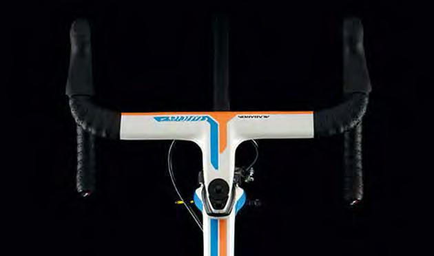 Si tratta del manubrio di Wilier integrato in carbonio monoscocca. Il manubrio è progettato e prodotto da Wilier Triestina ed è stato introdotto per adattarsi al meglio alle caratteristiche di integrazione di Cento10AIR. Il manubrio, con de-