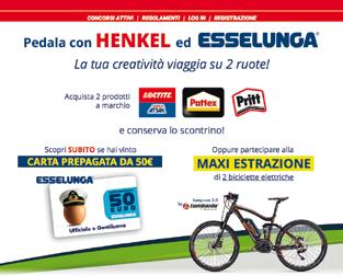 di tutta Italia che aderiscono all’iniziativa e prevede una vincita istantanea attraverso l’acquisto di due prodotti a marchio Loctite (Super Attak), Pattex o Pritt. Essa andrà verificata inserendo i dati dello scontrino, nel sito www.lafamigliaincollatutto.it, nello spazio dedicato al concorso di carte prepagate Esselunga da € 50. Coloro che non risulteranno immediatamente vincenti in questa modalità potranno partecipare a un’estrazione finale di 2 eBike Lombardo Sempione 3.0, e una full con motore Bosch Performance CX. L’estrazione finale avverrà il 3 ottobre.