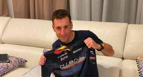 Il numero uno dei ciclisti italiani nelle corse a tappe firma una collezione che racconta la sua storia: i colori della Sicilia, le vittorie nei tre grandi Giri e il soprannome “lo Squalo”, il tutto in design sobrio ed elegante. Una linea completa ispirata dallo stesso Vincenzo Nibali che ha collaborato, con i designer di Santini. I fan dello Squalo da oggi hanno un’occasione in più per sottolineare la propria stima per Vincenzo Nibali. La capsule collection si ispira alla sua storia e alla terra dove è nato, la Sicilia. Il risultato finale dello studio è una collezione che racchiude tutti gli elementi caratterizzanti l’essenza del protagonista. Tutti i capi della collezione riportano la grafica di tre linee colorate e parallele che fanno da base alla scritta di Nibali: una rosa, una gialla e una rossa che omaggiano le vittorie del siciliano nelle tre grandi corse a tappe. La maglia è caratterizzata da un altro dettaglio di colore, scelto anche per il cappellino abbinato: la tasca centrale posteriore, così come l’interno del collo della jersey, sono realizzati in rosso e giallo, che richiamano i colori della bandiera della regione Sicilia. La linea include jersey, calzoncino, maglia intima, guantini, cappellino e calzini: «Tutti i capi, ad eccezione del cappellino e dei calzini, sono realizzati con uno sfondo blu scuro che richiama il colore dominante del mare che circonda Messina, come lo stesso Vicenzo ci ha sottolineato già dai primi incontri».