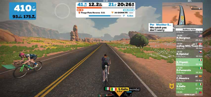 Utilizzo molto Zwift. Sia perché uno sponsor della mia squadra (Canyon-SRAM), sia perché reputo sia una piattaforma molto valida per provare anche in questo periodo l’adrenalina del confronto con gli altri ed il mettersi alla prova.