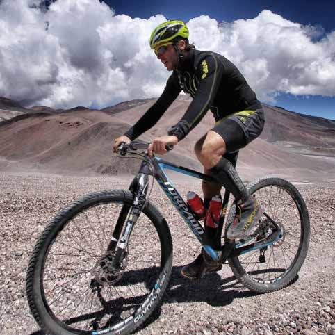 Pedalare in quota è veramente duro, l’aria sottile ti entra nei polmoni come fossero manciate di lamette ingoia te senza scrupolo. Ti senti tagliare la gola, spaccare i polmoni, ma pedalata dopo pedalata ci fai l’abitudine, e giorno dopo giorno, per risentire le stesse taglienti sensazioni devi alzare l’asticella della quota. Il bello del corpo umano è che se non lo esasperi di colpo, con l’a bitudine e l’allenamento si adegua a tutte le situazioni. L’altura è indubbiamente una di quelle cose a cui il fisico deve abituarsi in modo assoluto e il gergo tecnico per definire questo allenamento all’aria rarefatta è acclimatamento. In preventivo di fare un’impresa come quella in programma, ovvero salire dai zero metri del livello mare (in Cile) ai quasi 7000 della sommità dell’Aconcagua (Argentina) entro le 24 ore, in bicicletta da strada fino ai 2950 dell’ingresso del parco e poi su di corsa, Nico Valsesia ha deciso di rifinire l’allenamento e l’acclimatamento usando anche una mountain-bike. Nello specifico usa una Torpado Ribòt 29’ che monta Sram XX1 completo, freni Formula con ruote ZTR Crest (Nico inoltre adopera scarpe Lake, abbigliamento Sportful, casco SH+ e occhiali NRC e, sempre molto attento all’a-